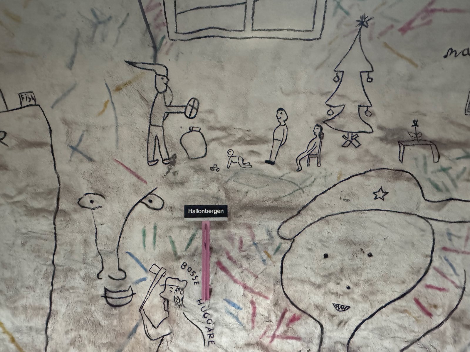 Algumas eu descobri por acaso; em Hallonbergen, achei super bacana eles fazerem de conta que a parede foi toda desenhada por crianças, além de outros equipamentos e cores que fazem tudo ficar mais divertido.