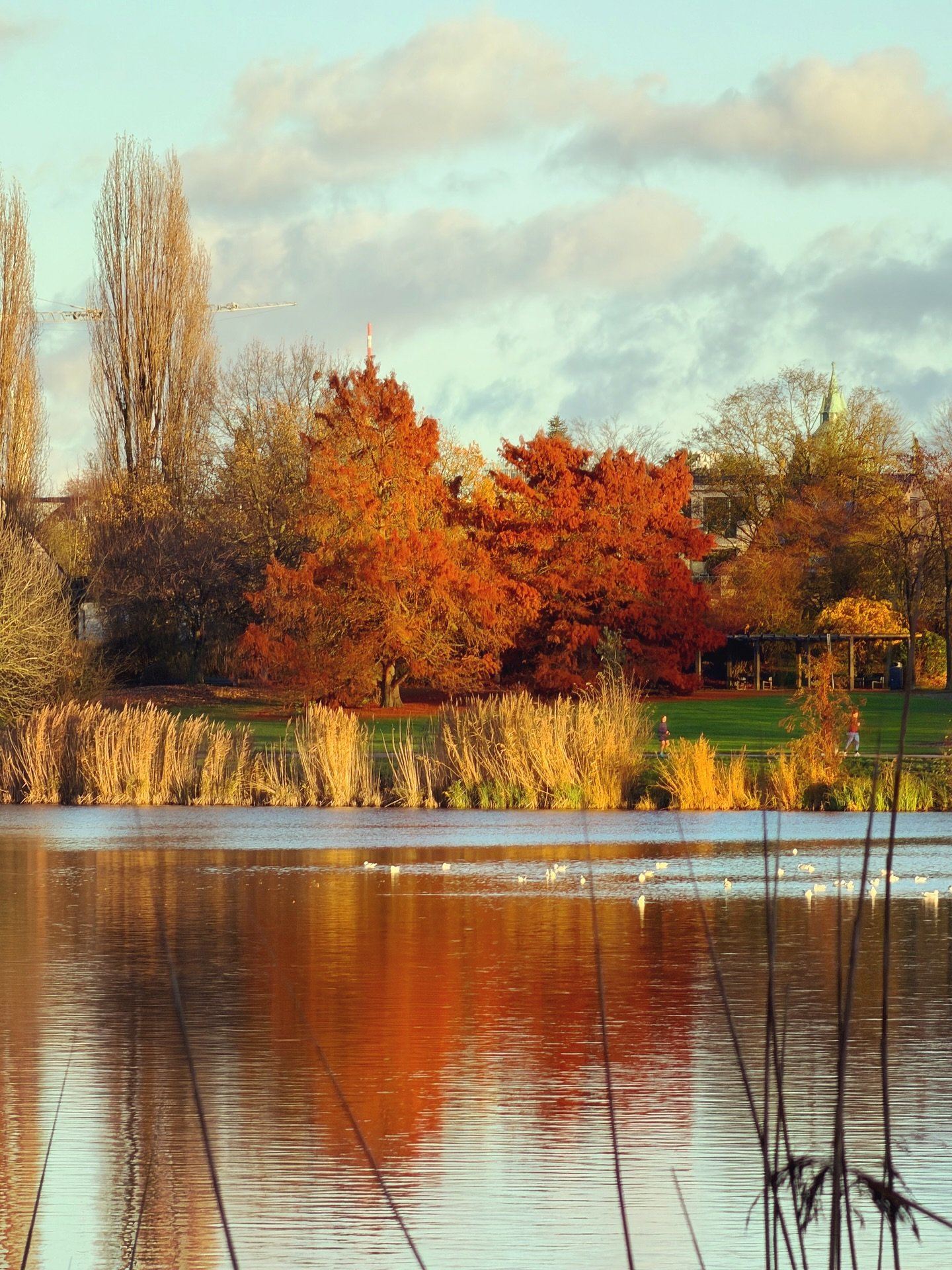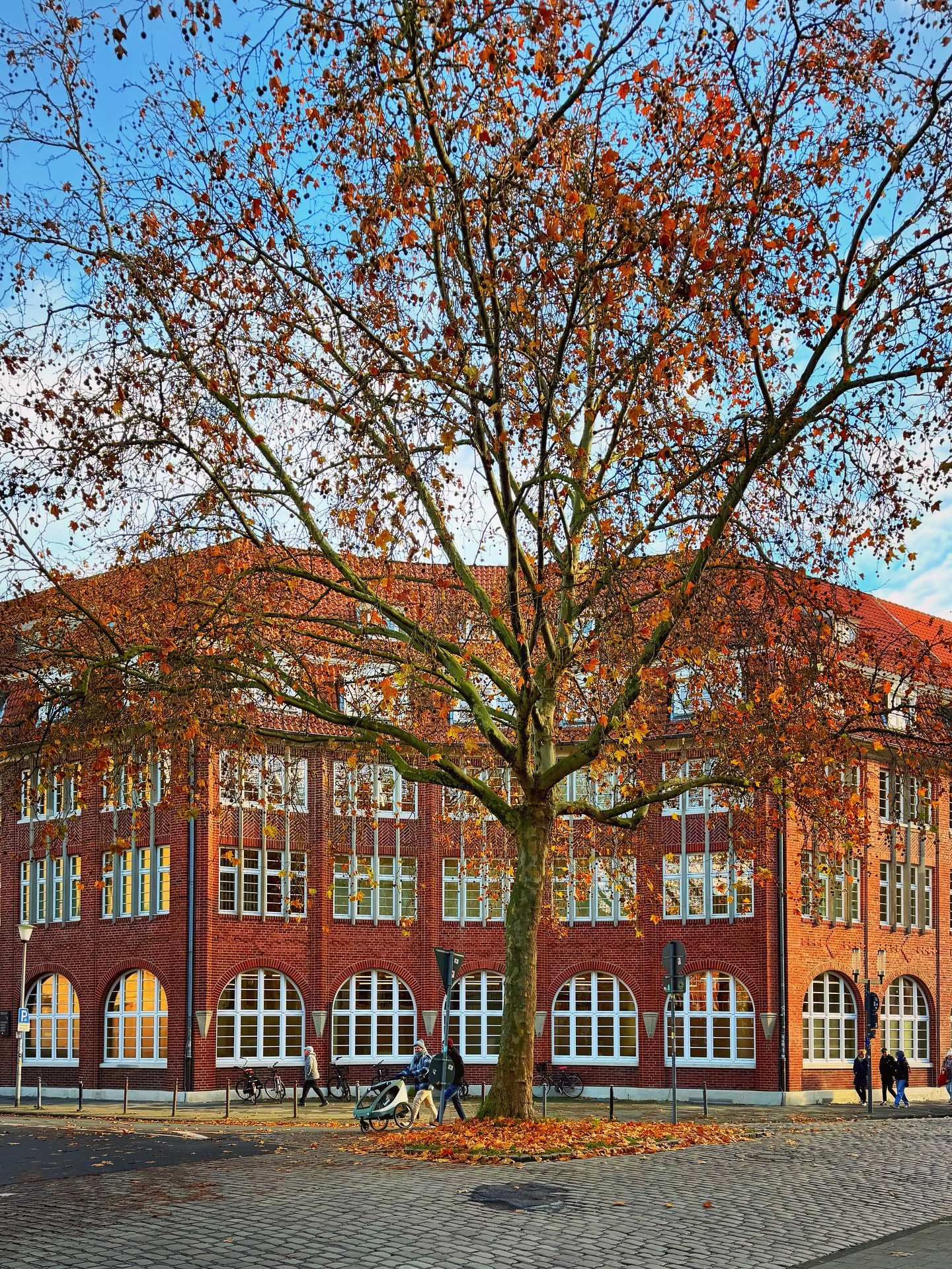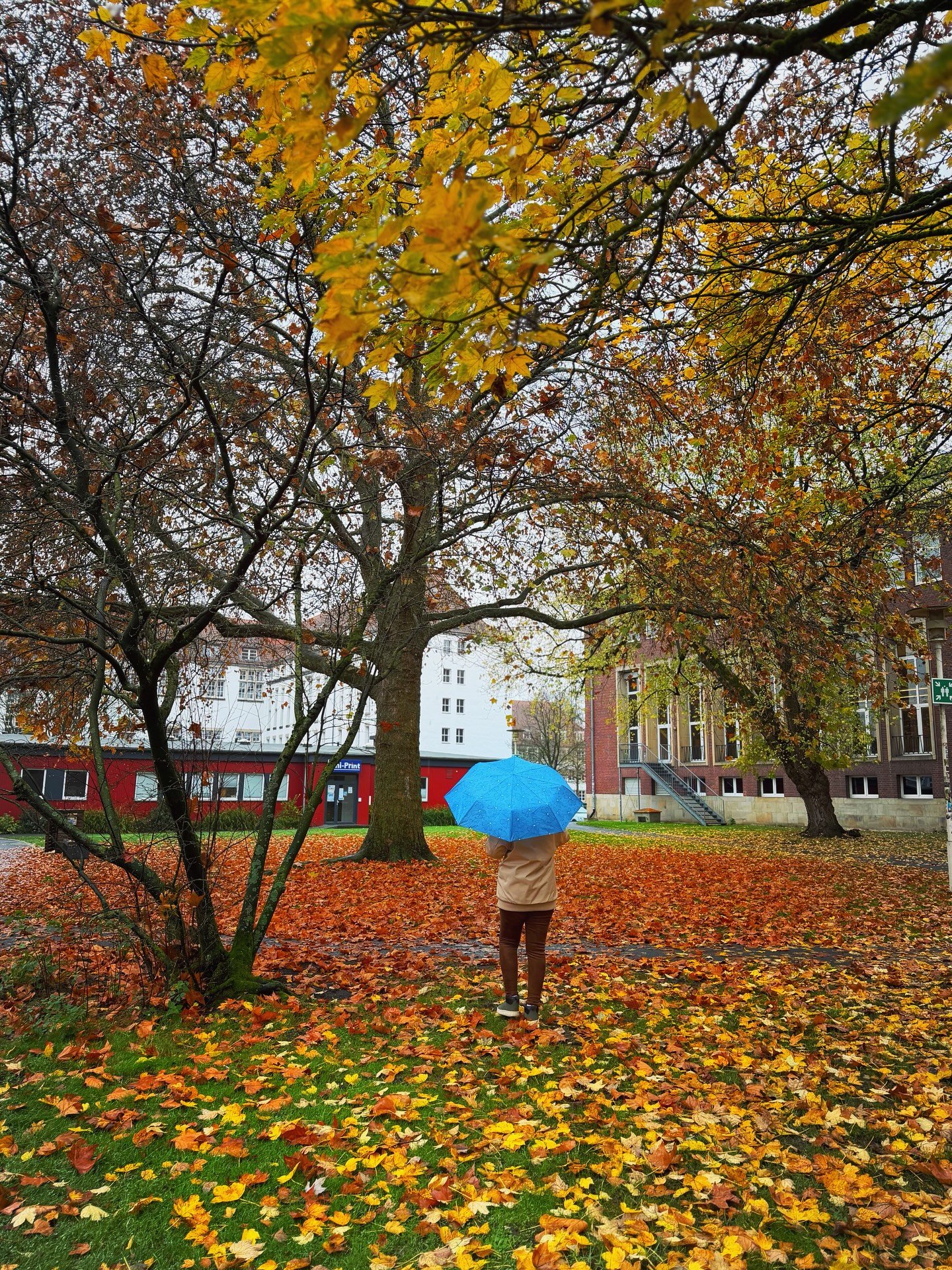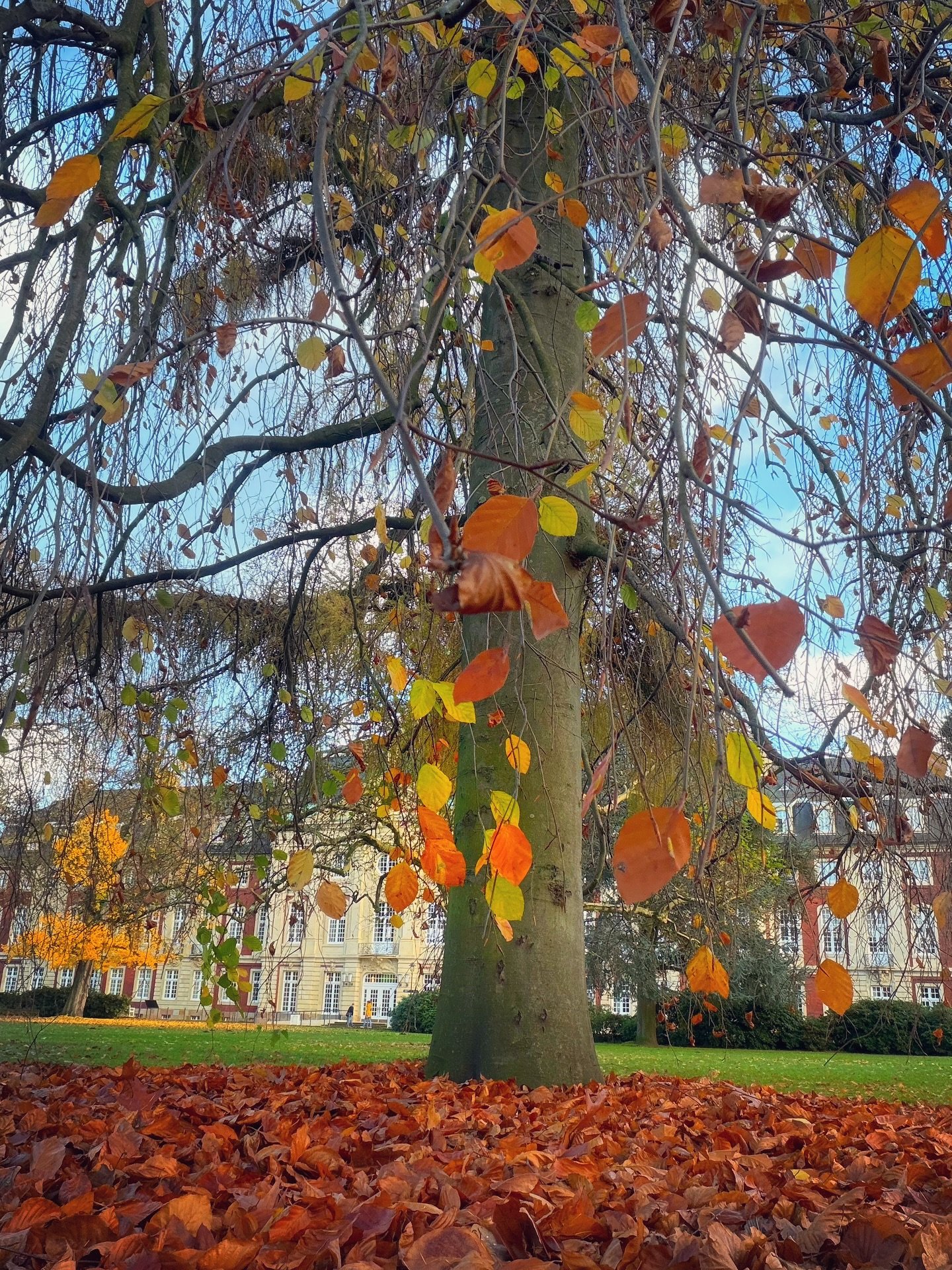 Apesar do tempo chuvoso, a gente aproveitou bastante. Na segunda-feira, andamos bastante pelo centro, visitamos o jardim botânico mantido pela universidade, o Palácio que serve de centro administrativo, o lago Aasee, rodeado por um parque com árvores belíssimas, dando seu espetáculo outonal. Veja se não é lindeza demais!