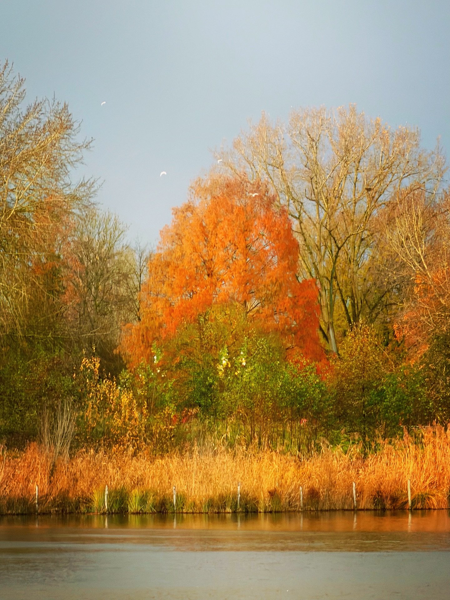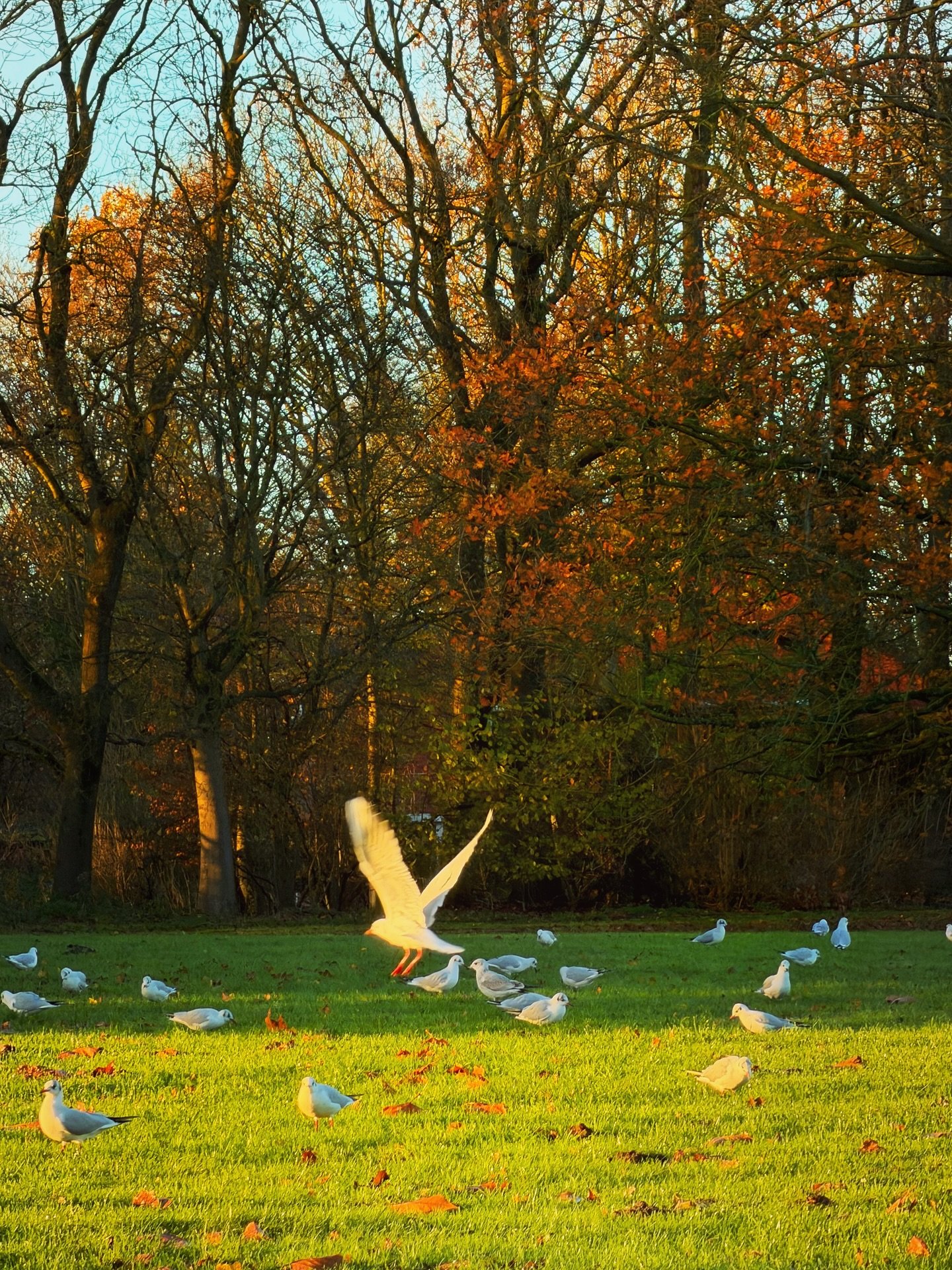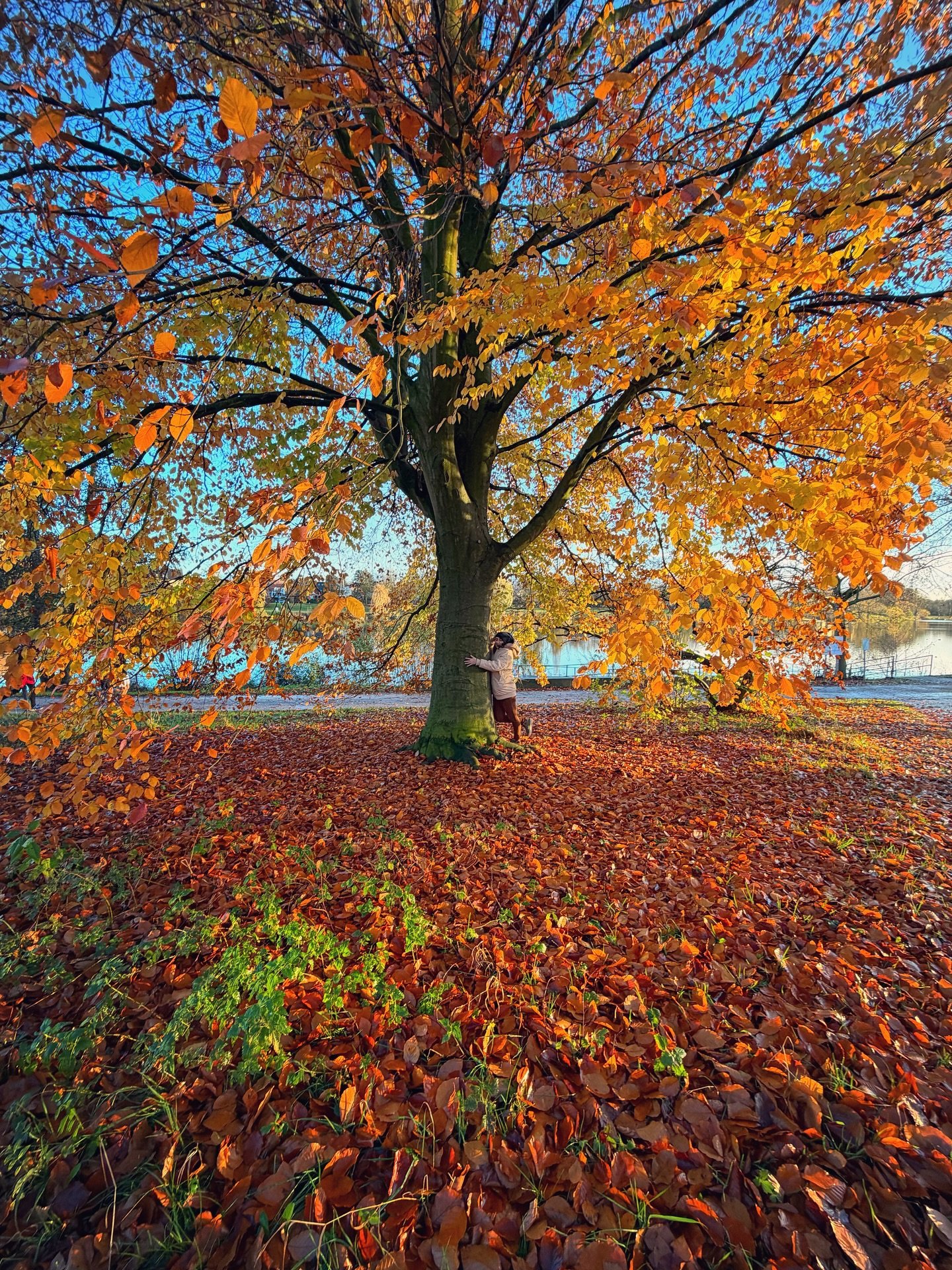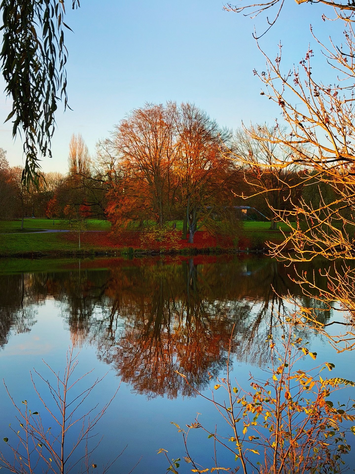 Apesar do tempo chuvoso, a gente aproveitou bastante. Na segunda-feira, andamos bastante pelo centro, visitamos o jardim botânico mantido pela universidade, o Palácio que serve de centro administrativo, o lago Aasee, rodeado por um parque com árvores belíssimas, dando seu espetáculo outonal. Veja se não é lindeza demais!