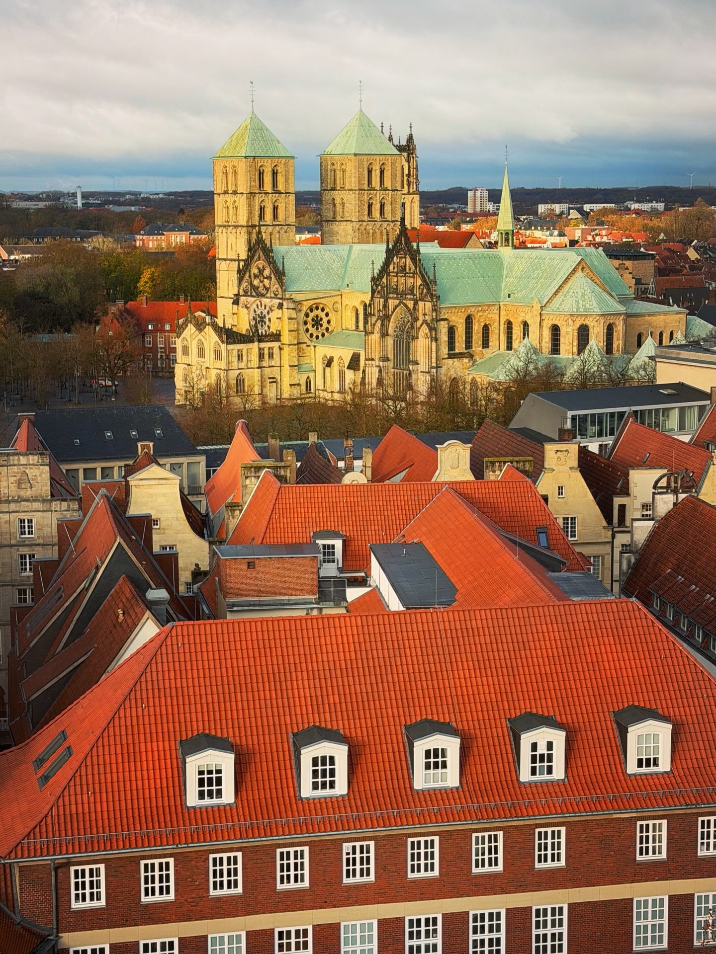 Chegamos domingo no final do dia e nos hospedamos no H.ostel de Münster (recomendo demais; a gente pegou um quarto duplo com banheiro privativo — excelente em todos os aspectos — não é publi!).